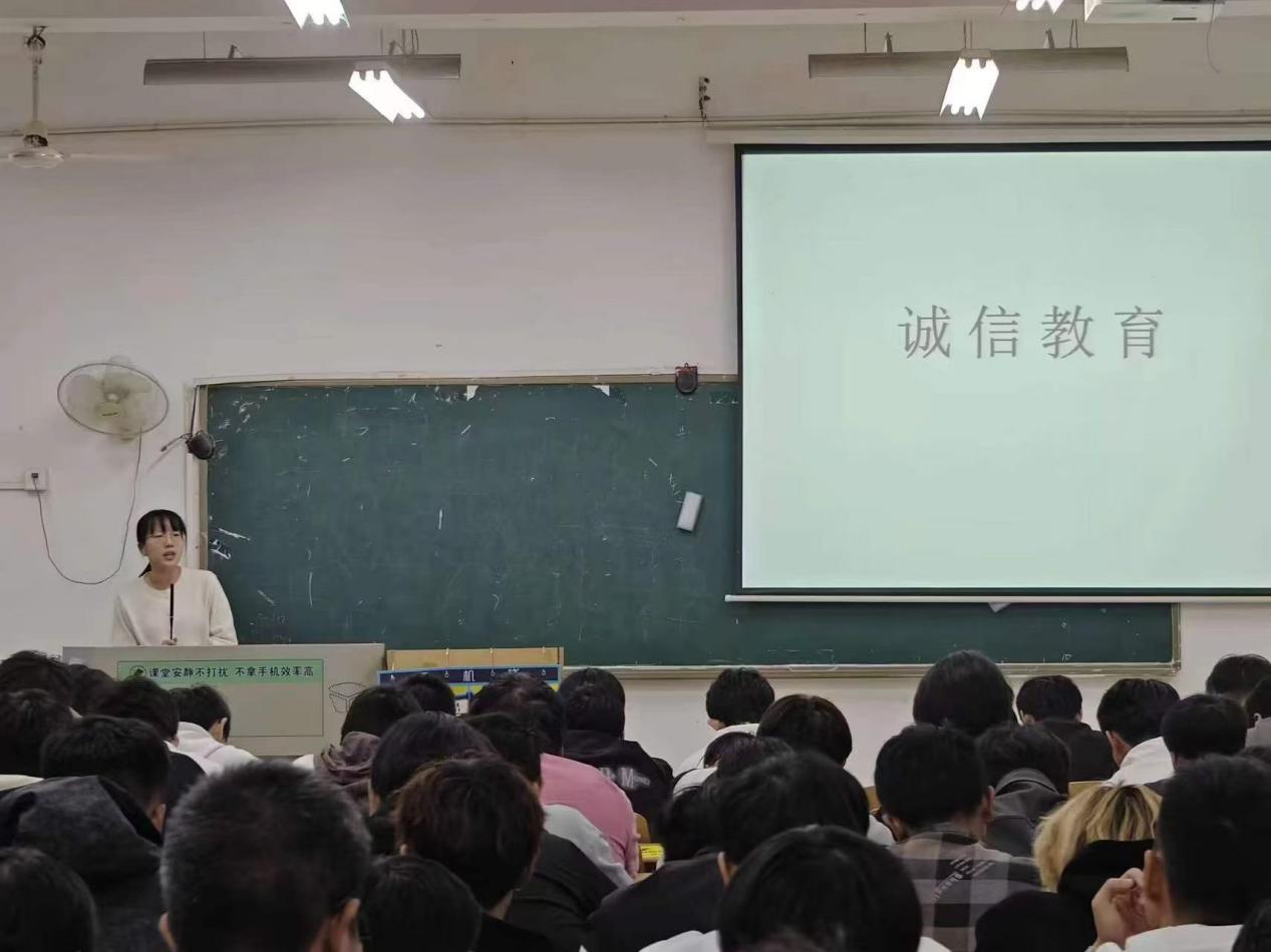 随后,辅导员们分别在不同方面举出例子,例如学习上考试不要作弊,网课不要代刷,作业不要代写;生活上借钱要及时还,拿了别人的生活用品要及时归等等案例进一步向同学展示了,如果不守诚信的危害。希望每一位学生都能够引以为戒,时刻在心里提醒自己要有诚信的美好品质。教室里,同学们被精彩的演讲深深打动,同学们纷纷表示受益匪浅。