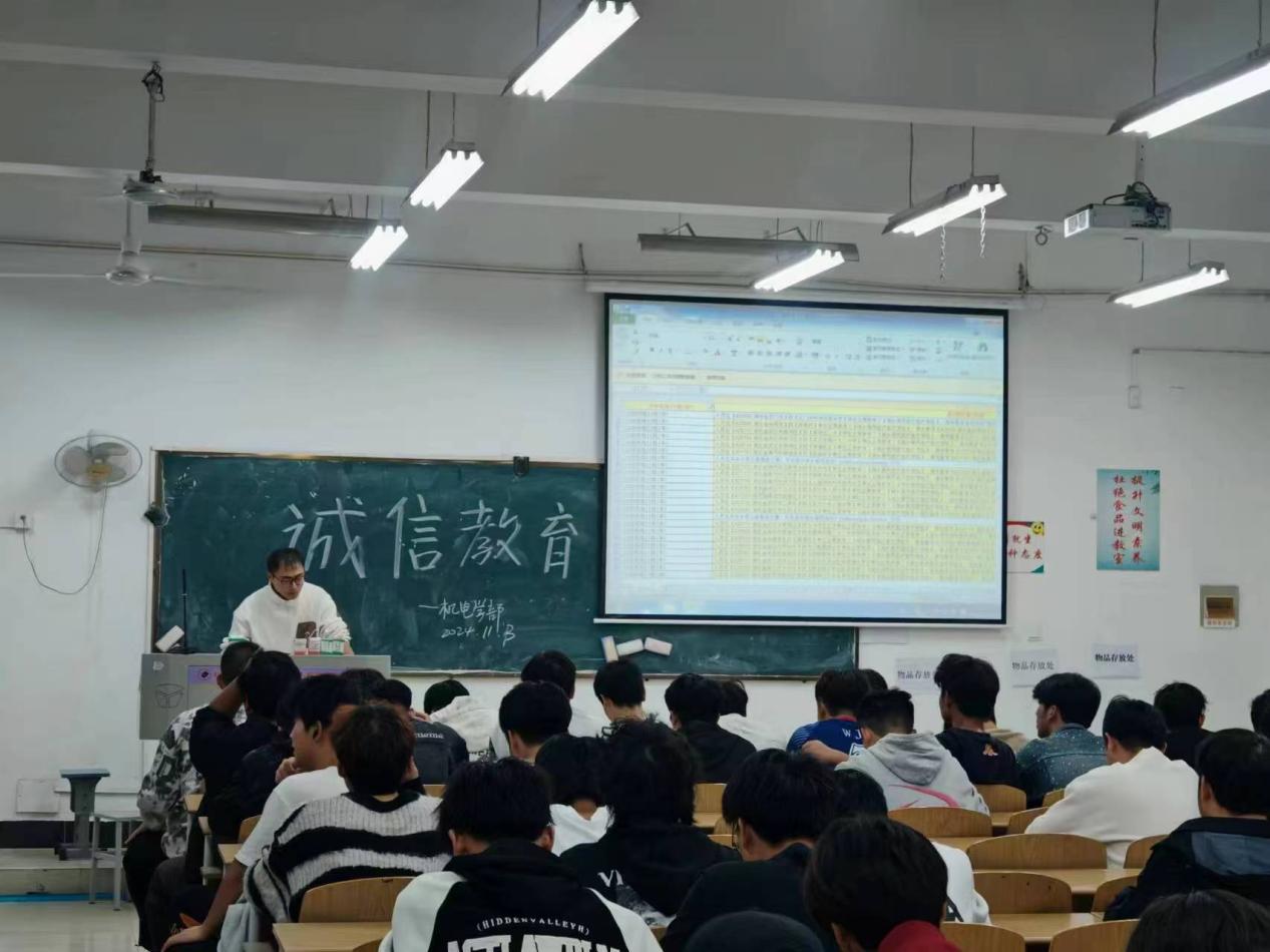 (通讯员郑立凡)2024年11月3日,一场以“诚信教育”为主题的班会活动在机电工程学部成功举办。7名带新生的辅导员深入浅出地给学生灌输诚信思想,引导学生树立正确的诚信观念,弘扬诚信文化。