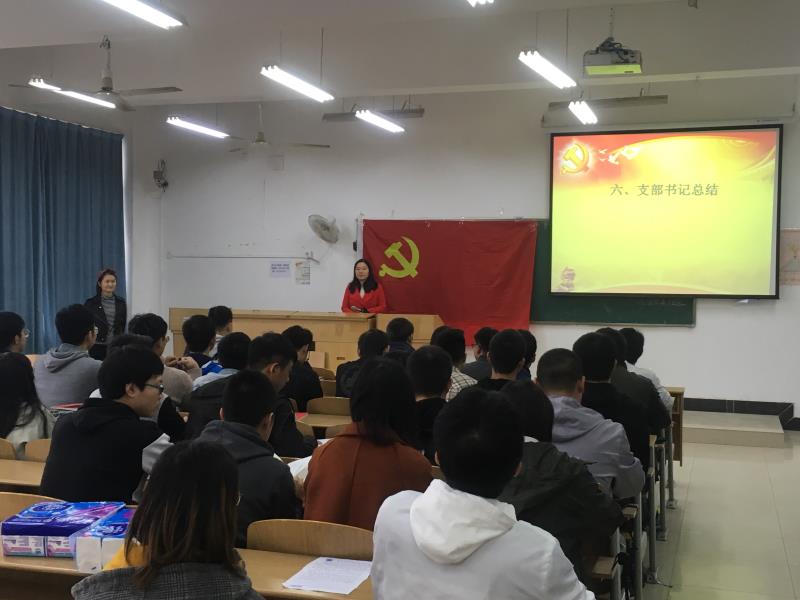 2018年11月6日上午12:00,机电工程学部学生党支部二支部在教学楼南4402召开了支部主题党日学习活动。本次大会的主题是“学生党员在脱贫攻坚中要自觉增强政治意识”。出席会议的有: 支部书记杨维老师、组织委员刘帅、宣传委员李曼、纪检委员李陈衍以及全体党员同学。