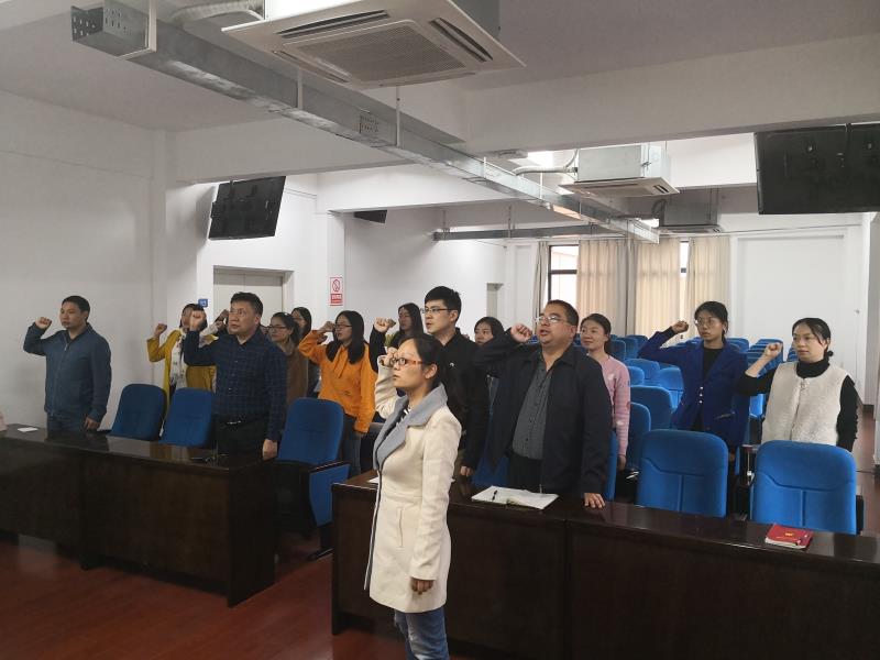 会议通报完党员到会情况和本月缴纳党费情况之后,带领大家重温了入党誓词。接着由刘钰如、蔡晓燕、卢君宜、蔡容、童小琴和袁金娟六位同志依次带领大家学习了党章中51-55页第七章党的纪律6条全部内容。