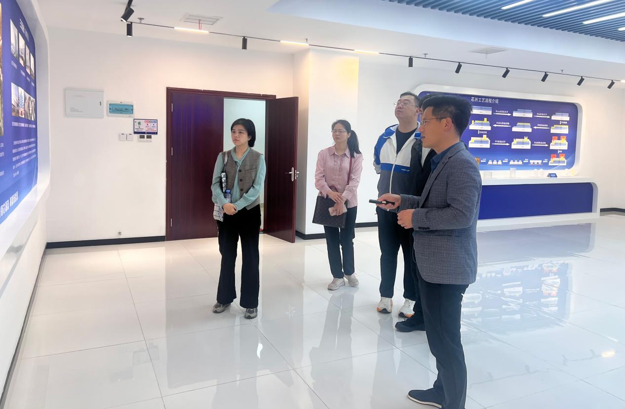 在企业展厅,人事经理夏春晖详细介绍了公司发展历程、文化理念及芯片制造核心技术。作为国内半导体行业领军企业,三安光电以“创新驱动、技术领先”为核心战略,构建了涵盖芯片设计、晶圆制造到封装测试的全产业链布局。随后,调研团队实地走访黄光站、化学站、薄膜站等核心生产区域,近距离观察光刻、薄膜沉积、分选测试等工艺流程。吴琼副书记表示,生产线的高度自动化与精密化设备体现了智能制造发展趋势,为学院优化实践教学体系提供了重要参考。