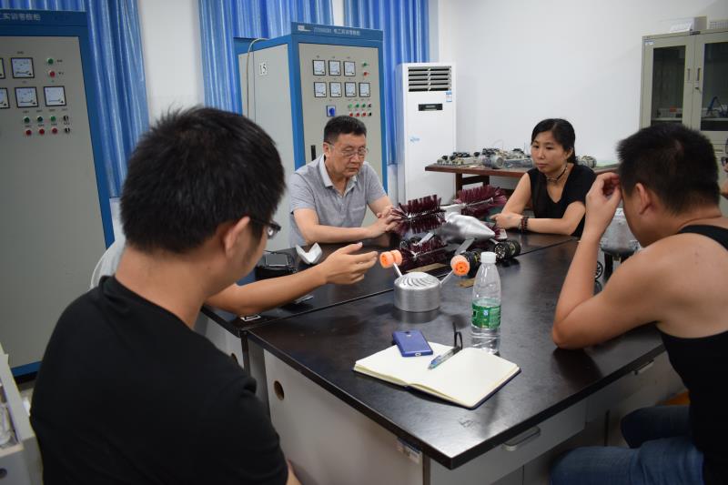 学部主任、系主任与团队成员一起讨论作品技术难点,并进行专业指导