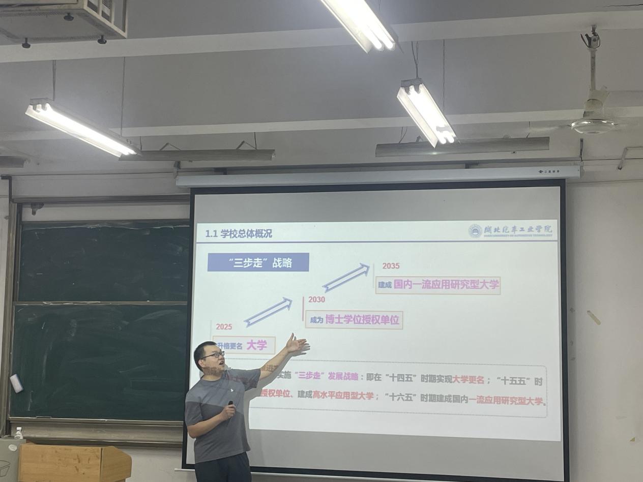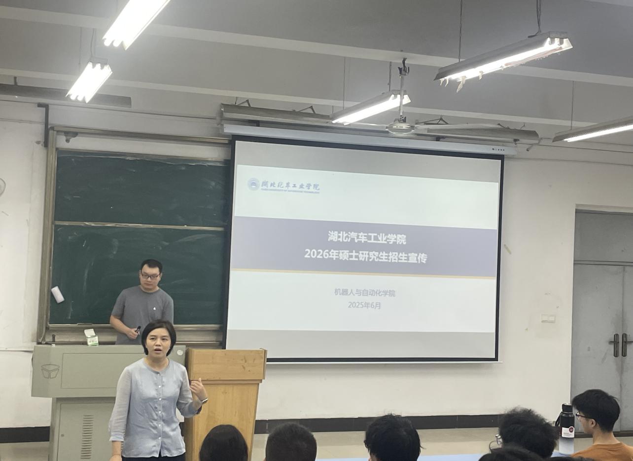 随后,湖北汽车工业学院机器人与自动化学院的李老师对该校及学院进行了全方位讲解。李老师介绍,湖北汽车工业学院地处湖北十堰,校园环境宜人,为学生提供了良好的学习与生活氛围。学校重点学科优势突出,硕士学位点涵盖多个领域,为学生提供了丰富的专业选择。机器人与自动化学院于2025年1月正式成立,其历史可追溯至 1983年的电气工程系,经过多年发展,学院在师资队伍、博士点建设、科研项目承担等方面成绩斐然,形成了完善的产学研一体化建设体系,为学生的学术成长与实践能力培养提供了有力支撑。