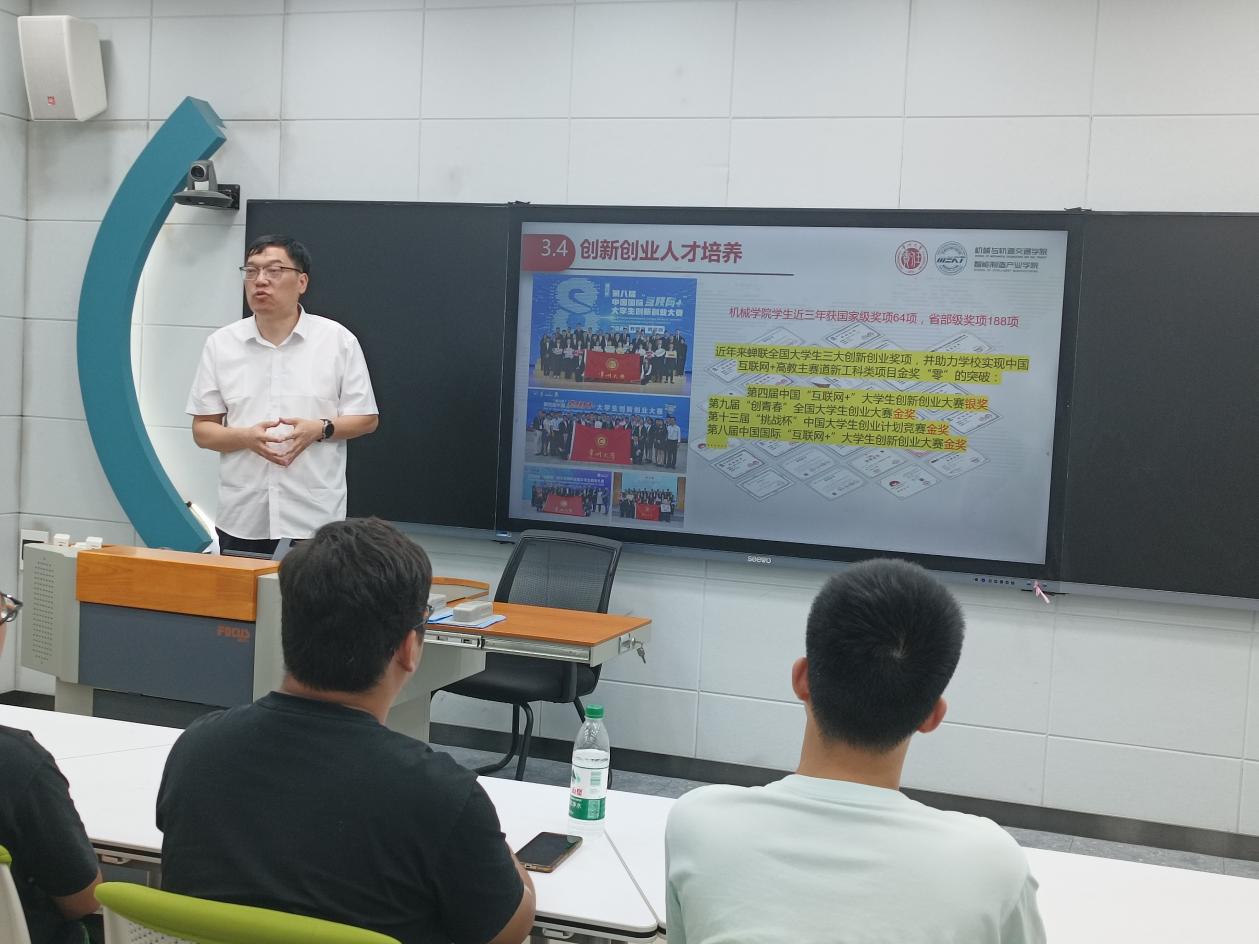 对于 “互联网 +” 大学生创新创业大赛,他强调该赛事聚焦互联网与各行业的融合创新,鼓励同学们立足实际需求,挖掘具有创新性和商业价值的项目;在讲解 “挑战杯” 中国大学生创业计划竞赛时,郑剑峰教授着重指出,此赛事注重考察项目的科学性、先进性和可行性,参赛项目需具备扎实的理论基础和严谨的商业逻辑;谈及 “创青春” 全国大学生创业大赛,他鼓励同学们积极组建跨学科、跨专业的团队,发挥各自优势,打造有竞争力的创业项目。此外,郑剑峰教授还分享了常州大学机械与轨道交通学院在备赛过程中的宝贵经验,包括项目选题、团队组建、资源整合等方面的实用技巧。