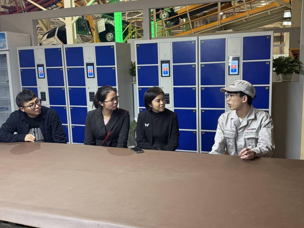(通讯员李明櫆)为开拓学生就业前景,深度挖掘岗位人才需求,进一步加深校企合作,11月4日下午,机电工程学部党总支副书记吴琼带领综合科副科长魏雪,辅导员吴灵松、李明櫆前往东风奕派汽车科技公司进行考察调研,并与正在东风奕派汽车科技公司武汉二厂进行岗位实习的学生代表展开座谈。