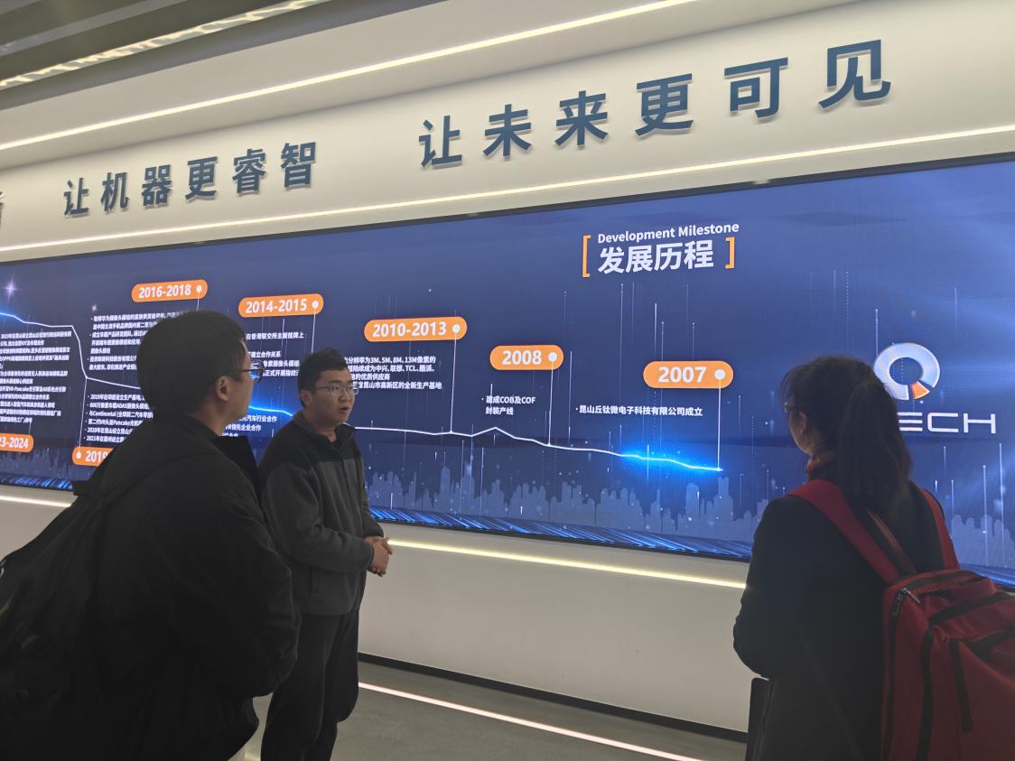 昆山丘钛微电子是国内智能终端摄像头模组、指纹识别模组研发制造领军企业,产品应用于智能手机、智能汽车等领域,与多家全球知名终端品牌深度合作。其业务与学部专业高度契合,是毕业生实习就业的优质平台。走访中,公司热情接待,带领参观无尘车间、光学研发实验室等场所,全面介绍企业发展、技术优势及人才战略。
