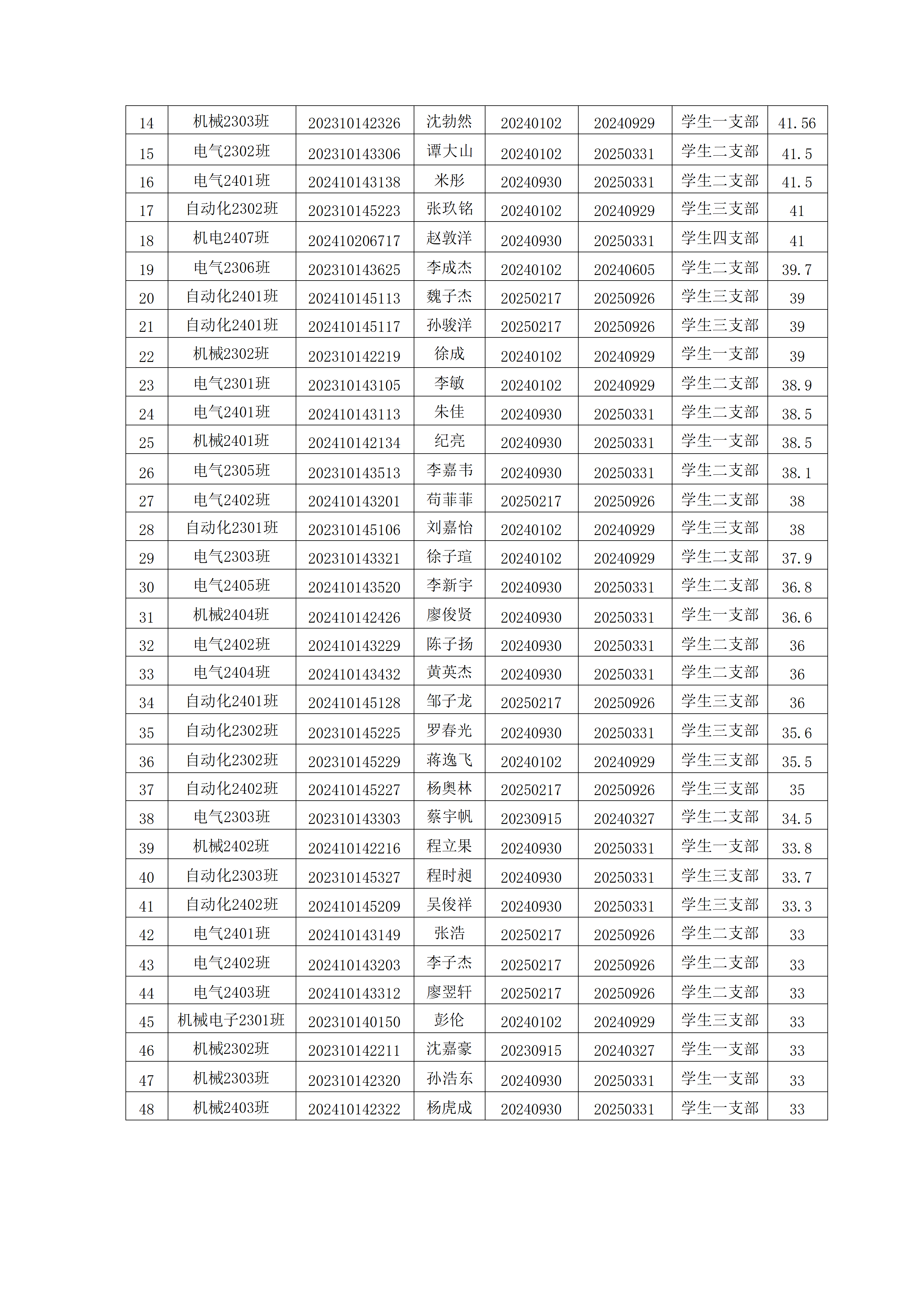 关于王睿喆等同志入党积极分子量化考核成绩的公示