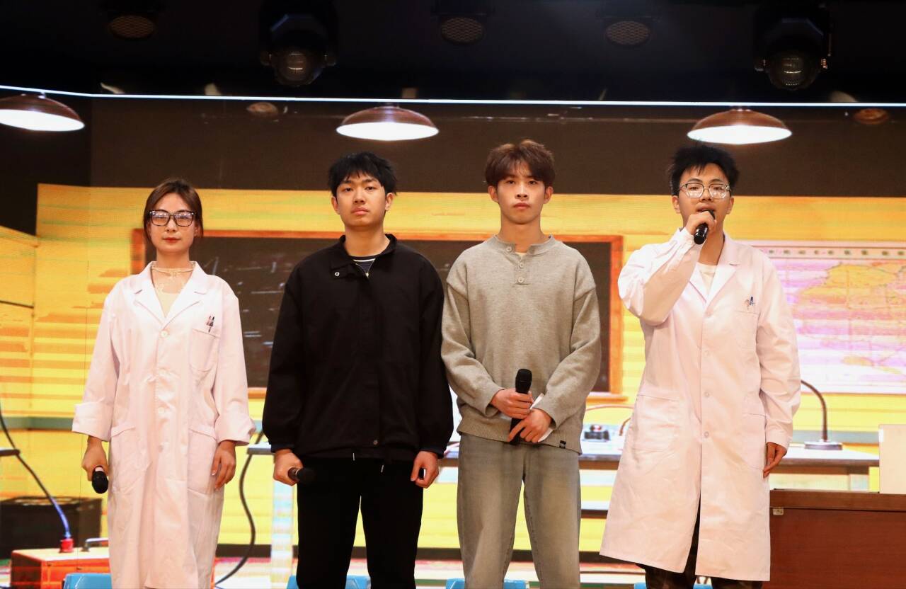 王佳杰、李新宇、闫乐、苟菲菲四位同学演绎的情景剧《点亮新中国的人》,生动再现革命先辈与建设者为国奉献、坚守初心的感人故事,同学们通过细腻的表演和富有张力的舞台呈现,将红色精神具象化、情感化,深深打动了现场观众。该作品凭借扎实的剧本编排和出色的舞台表现,荣获本次汇演三等奖。