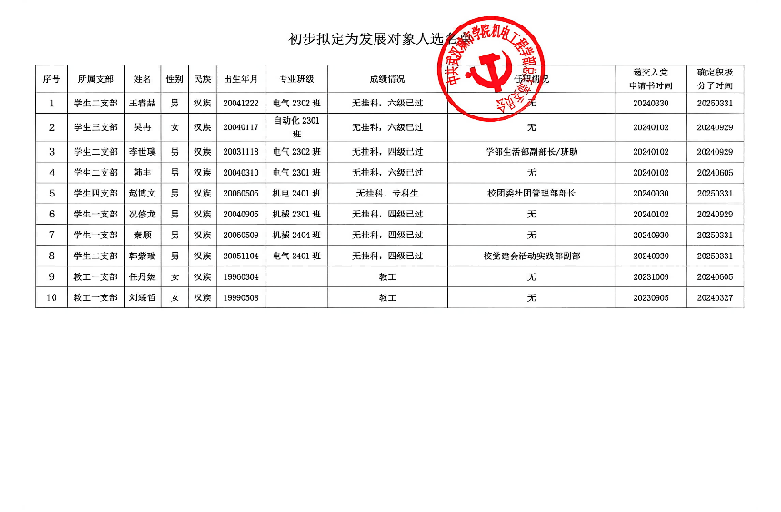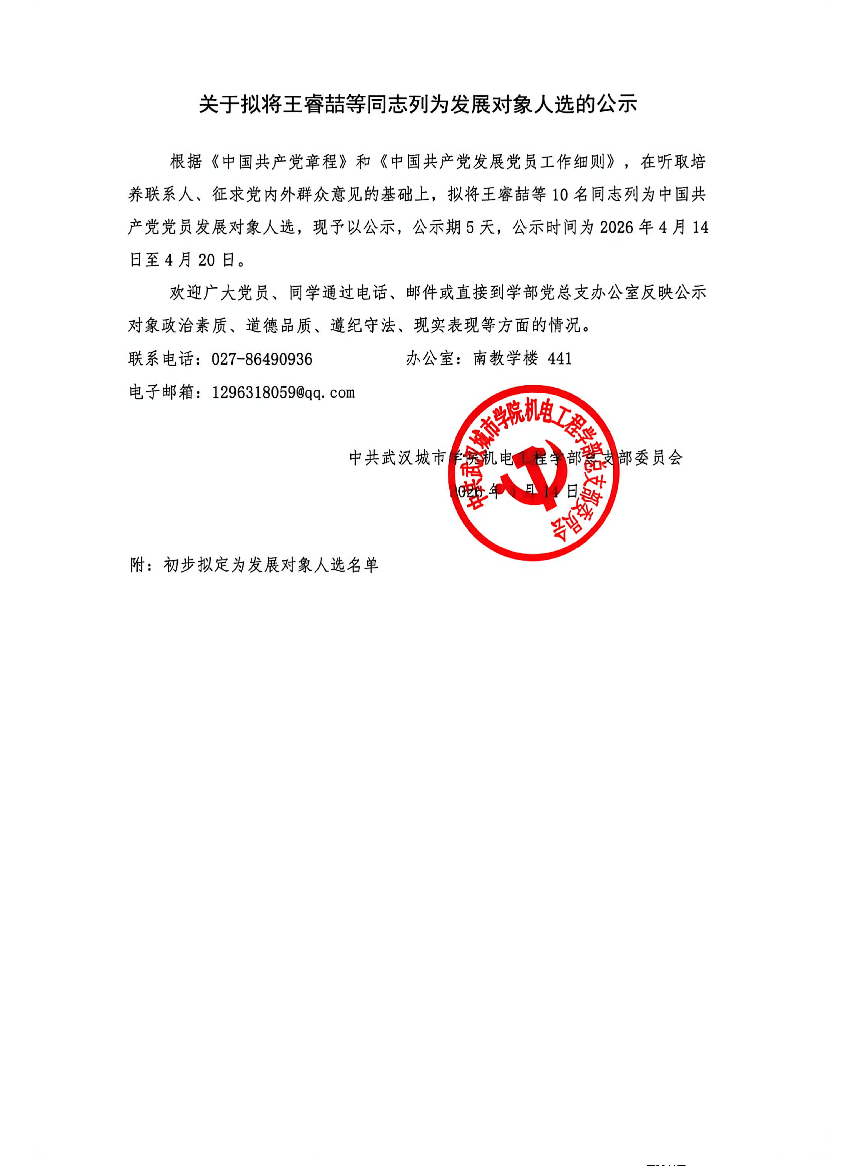 关于拟将王睿喆等同志列为发展对象人选的公示