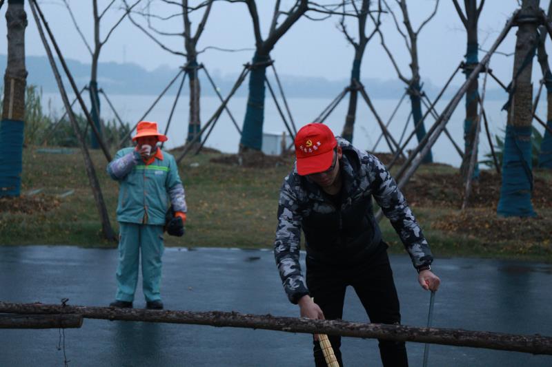 2018年12月11日,在武汉飘落初雪的第二天,机电学部党建会组织了学部党员、积极分子共计25人开展了“微笑服务日”志愿活动。他们为东湖绿道坚守在第一线的环卫工人们送去了暖身姜茶、爱心早餐以及防尘口罩,帮助用勤劳双手维护城市美貌的环卫工们做着力所能及的劳动,在寒冬之际献上一份特别的温暖。
