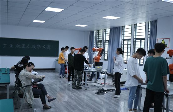 5月17日下午14:00,“工业机器人技术应用”比赛于实验实训中心S101举行,由钱宇主任、徐莹主任、徐陶祎主任、余秋月老师担任评委。参赛选手三人一组,共计三组,要求使用工业机器人应用实训系统完成编程,通过控制器机械臂在纸张上写出“I 中国”字样。三组选手均熟练运用程序,按时完成了书法的编程,既符合赛项要求,同时编写的字体各具特色。展现了学生专业知识掌握牢固,也彰显了选手的创新意识。在评委点评打分结束后,全体参赛选手手拿比赛作品进行合照,比赛圆满结束。