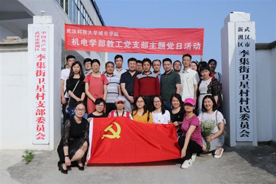 新闻网讯(记者 曹裕智 见习记者 沈双金)为弘扬爱国主义民族精神,5月27日下午,“全国党建工作样板支部”我院机电工程学部教工党支部全体党员前往学院精准扶贫驻点村新洲区李集街卫星村开展“我和我的祖国”群众性主题宣传教育活动。