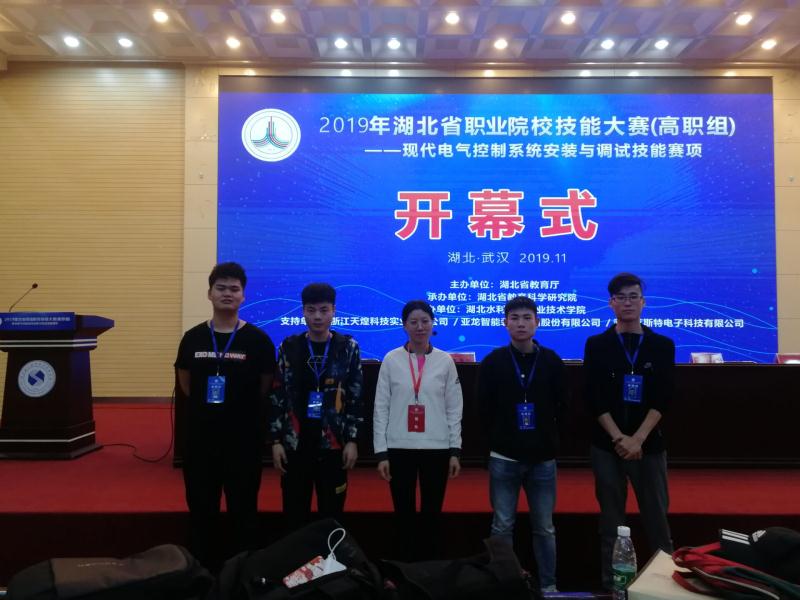2019年11月5日15:00,2019年湖北省职业院校技能大赛(高职组)现代电气控制系统安装与调试赛项开幕式在湖北省水职院学术报告厅隆重举行。机电学部王祖法、袁金娟、熊盛涛三位老师带领学部4名学生参加了本次比赛。此次比赛有来自全省37家兄弟院校单位参加。