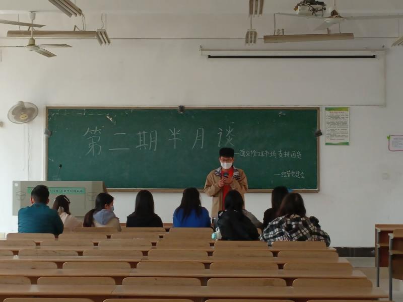 (经管党建讯 记者 董晰)2022年3月29日星期二午12︰10,武汉城市学院经济与管理学部于南5301开展了主题为“面对全球市场,支持国货”的第二期半月谈活动。此次半月谈活动由经管党建会旗帜活动部负责,各入党积极分子参与讨论。