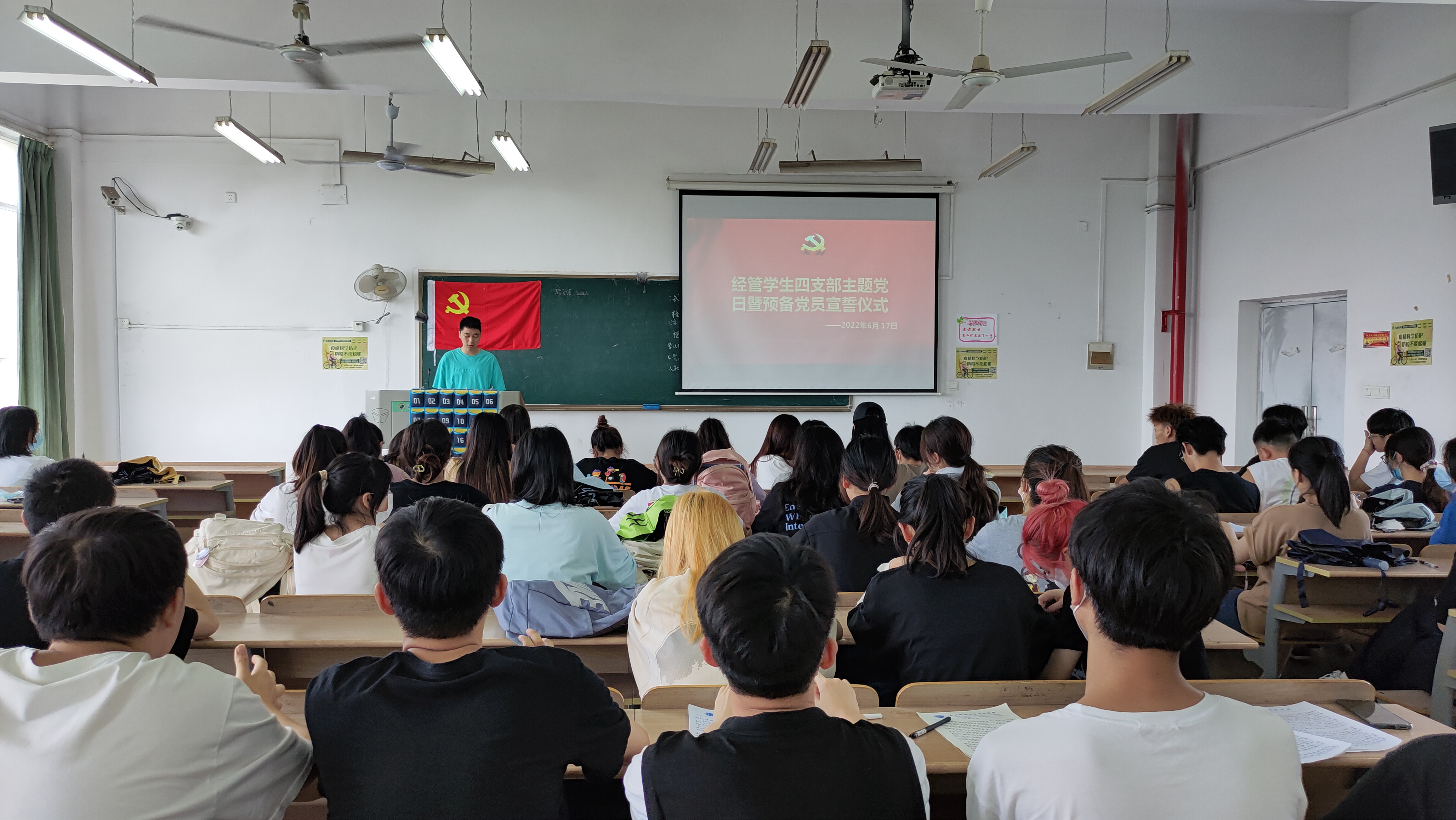 (经管党建讯 记者 马晓榆)2022年6月17日中午12:05分,武汉城市学院经济与管理学部四支部于南教学楼5405开展预备党员入党宣誓活动,预备党员面对党旗庄严宣誓,这誓言,是初心使命的再宣示;这誓言,是接续奋斗的再出发。