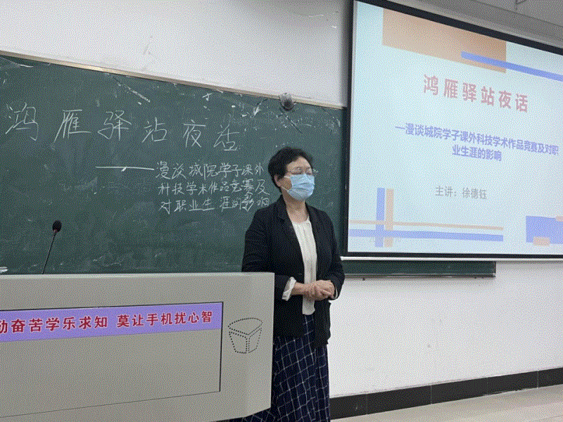 勇攀创新最高峰,启航挑战新征程。讲座伊始,主讲人讲谈神采飞扬,同学们听得津津有味。主讲人以“漫谈城院学子课外科技学术作品竞赛及对职业生涯的影响”为主题,从挑战杯、互联网+作品竞赛,挑战杯、互联网+释义,课外科技学术竞赛的意义三个方面介绍了何谓课外科技学术竞赛;通过李子豪、严雷、霍成龙、舒凡等典例让我们了解到城院鸿雁高飞的故事。大学生参加课外学术科技竞赛具有很大的必要性,有利于大学生树立创新意识、培养创新精神、提高创新能力;有利于培育健康的、积极进取的大学校园文化,增强校园学术氛围,形成相互启发促进和良性竞争的优秀学风;能够让用人单位青睐你,优先录用你;能够增强你的信心和底气,让你为梦想敢于奋斗。徐教授建议我们从小处着手,找准立足点,突出选题价值;积极主动寻求指导教师的帮助;努力掌握研究的方法、步骤进而来开展课外科技学术竞赛。