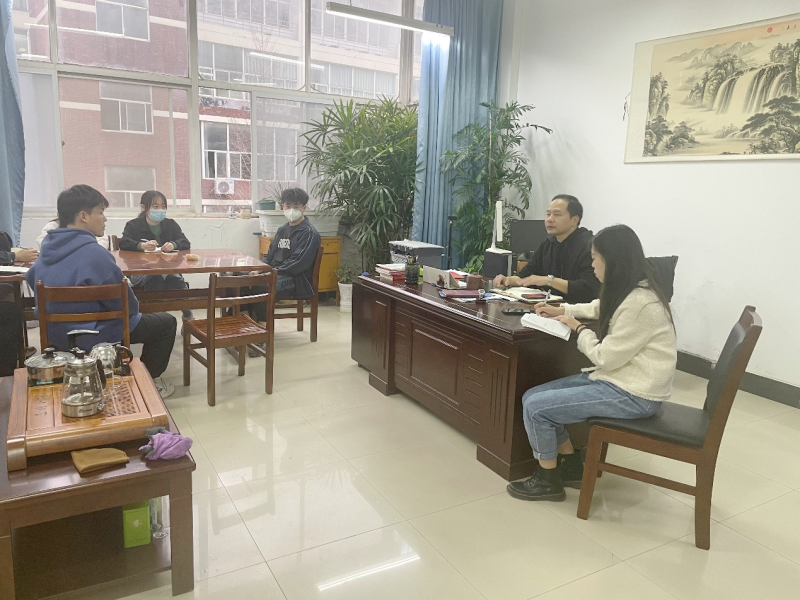 经管分团委新闻宣传部讯(记者:熊彩君 陈诚)2023年3月6日晚18:00,武汉城市学院经济与管理学部在教学楼南331办公室举行了学生干部座谈会。本次座谈会的与会人员有毛军杰主任,陈盈君书记,学生会组织主席团以及各部门部长。