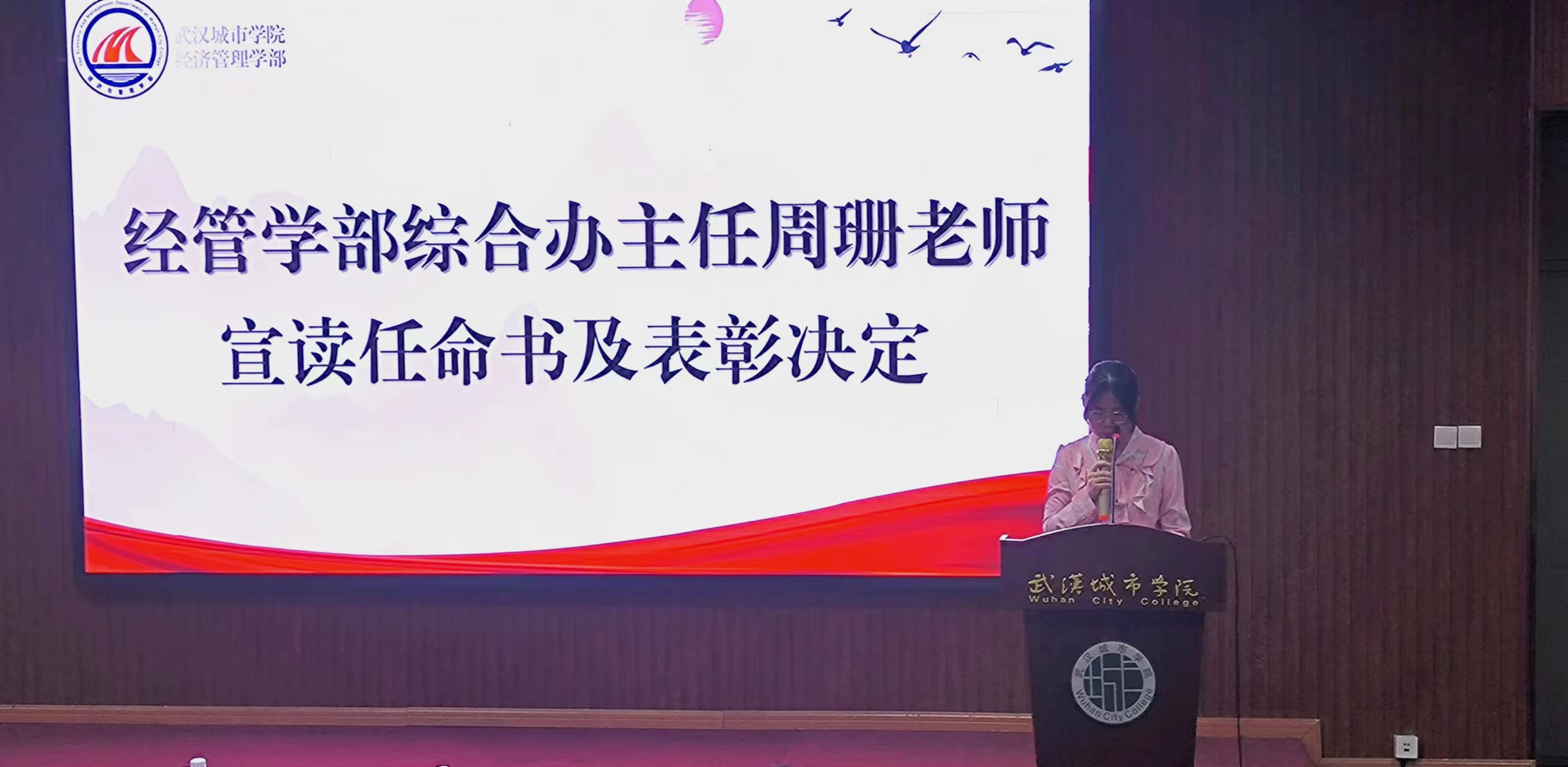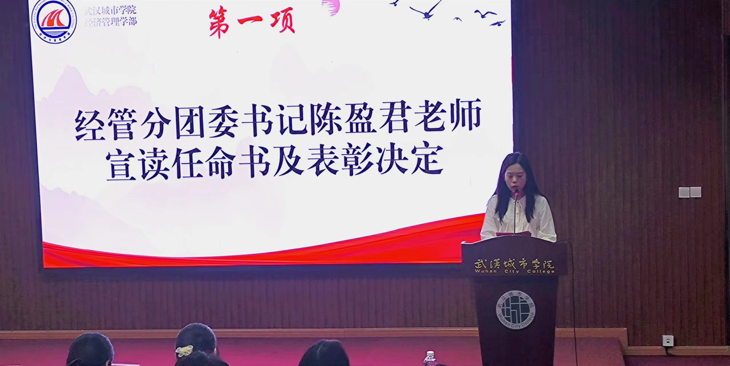 (经管党建讯 记者 曾袁康) 2023年10月17日中午十二点整,武汉城市学院经济与管理学部“学生会”“党建会”成立暨表彰大会在我院南一(2)号报告厅举行。