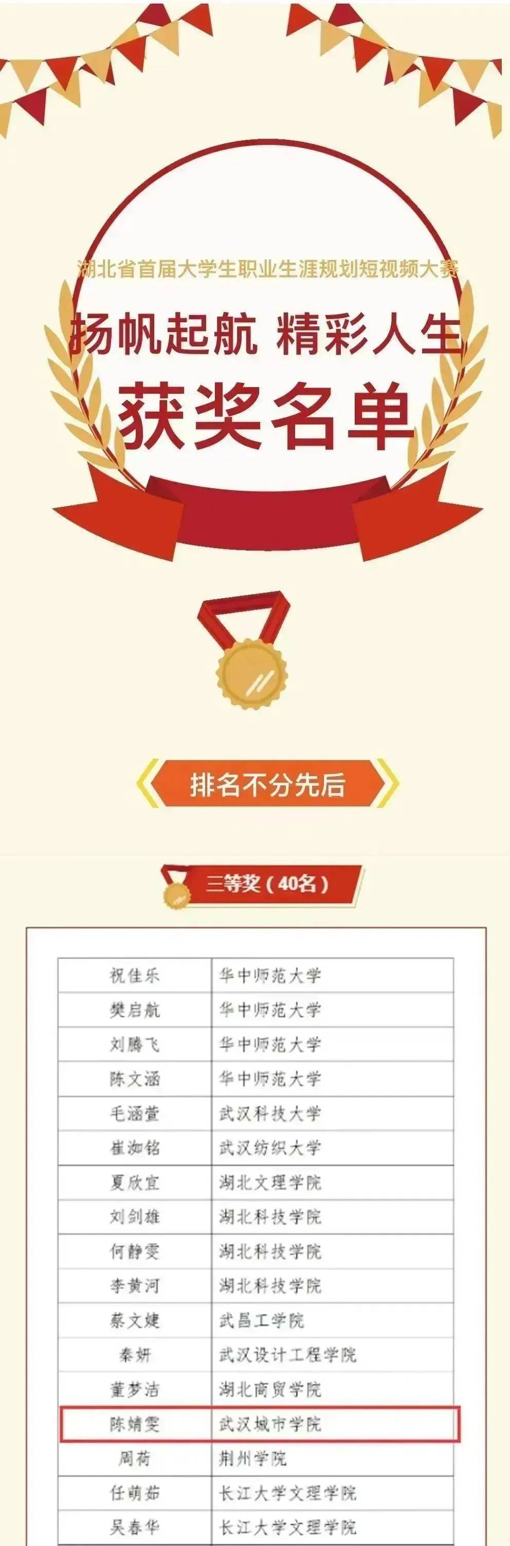 喜报 | 我院学子荣获湖北省首届“扬帆起航精彩人生”短视频大赛三等奖