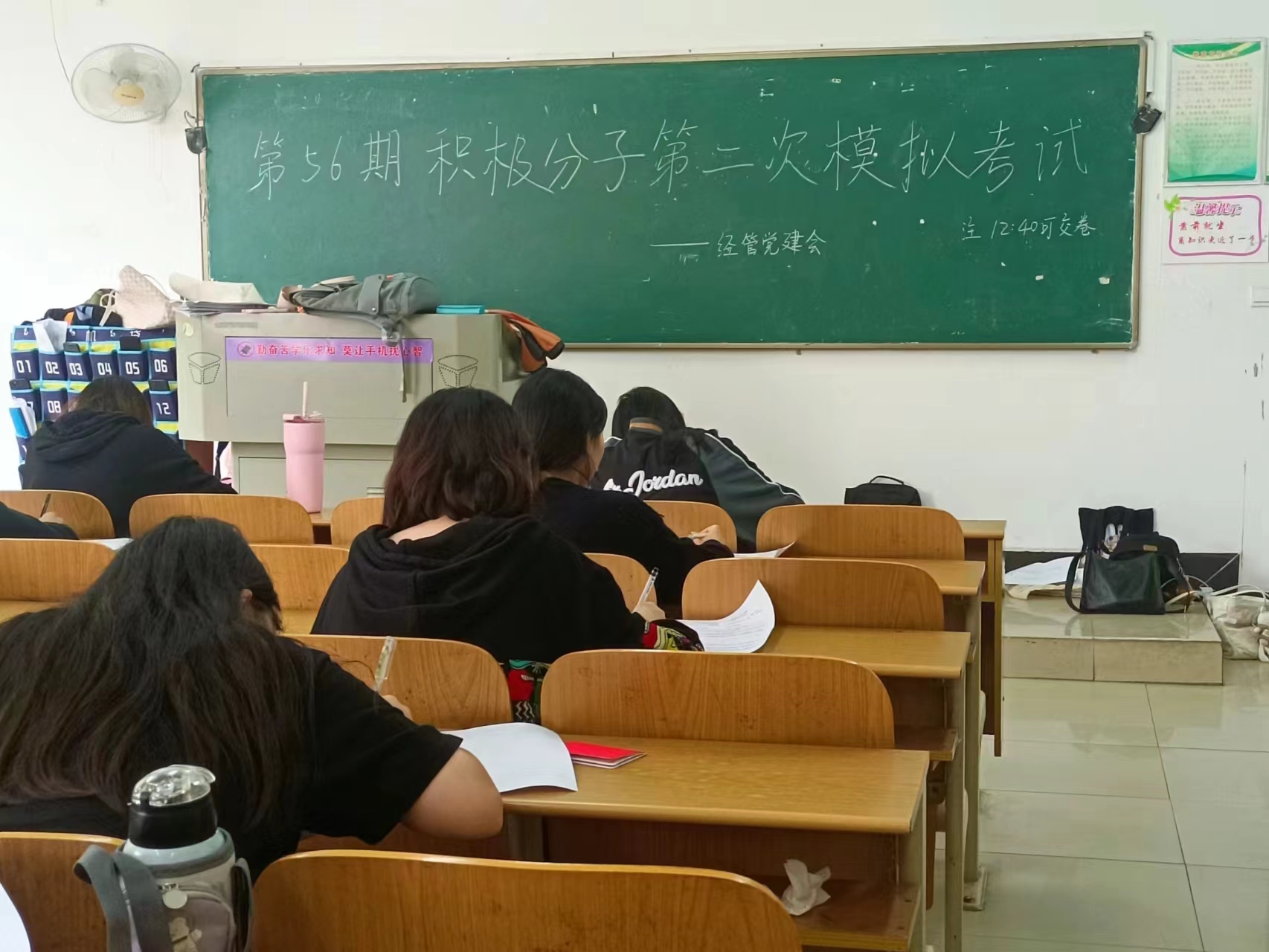 (经管党建讯 记者 李锦鑫)2023年10月27日中午十二点五分,为加深入党积极分子在党课学习中对党的核心思想的熟练程度,武汉城市学院经济与管理学部党建会于南3201、南3203教室开展了入党积极分子第二次模拟考试。