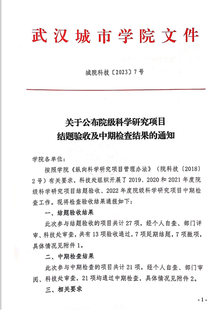 (通讯员:陈宣)近日,根据《关于公布院级科学研究项目结题验收及中期检查结果的通知》(城院科技【2023】7号),学部张航程讲师主持的校级重点科研项目《碳中和目标下我国汽车行业发展对策研究——以湖北东风乘用车公司为例》(项目编号:2021CYZDKY004),顺利结题。