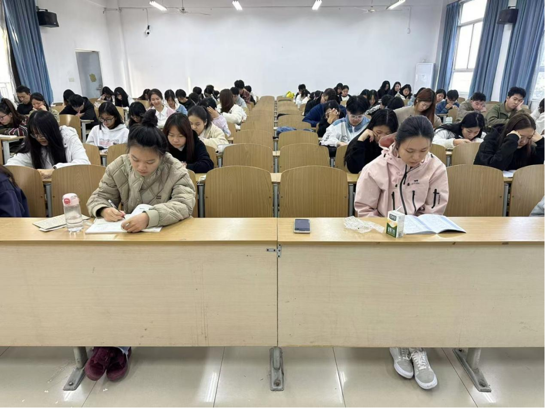 每当清晨7点20分,学工处处长严建与毛军杰主任巡查至南4教学楼三楼时,总能清晰地听到英语听力材料播放的声音。他们透过教室窗户望去,只见学生们正全神贯注地聆听并练习四级真题,为即将到来的英语四级水平考试做着充分准备。辅导员李璐璐对此表示:“四级考试临近,我们特地在早自习时段播放听力材料,通过反复练习提升学生们的听力水平,达到‘熟能生巧’的效果,帮助他们从容应对四级考试。”