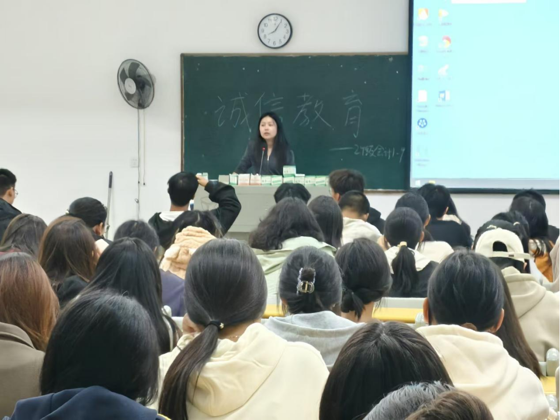 红安校区会计学1-9班辅导员钱梦迪在与同学们交流的过程中,着重从学习方面强调了诚信的至关重要性。她语重心长地对同学们说道:“在学习中坚守诚信,是为了培养你们严谨的学习态度和高尚的品德修养。只有以诚信为本,才能真正掌握扎实的专业知识,为未来的职业发展打下坚实的基础。"