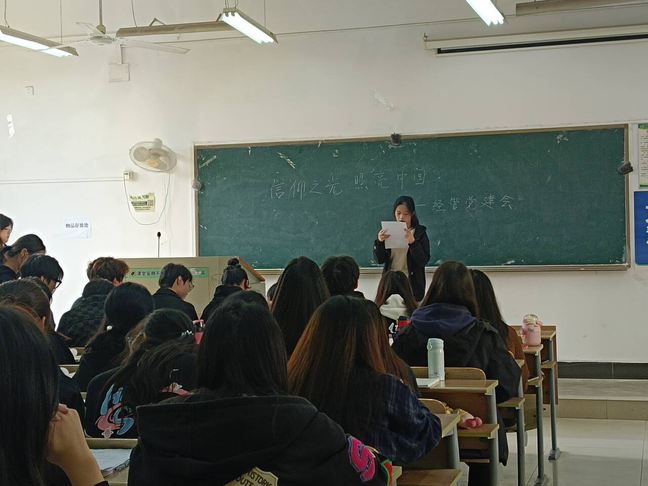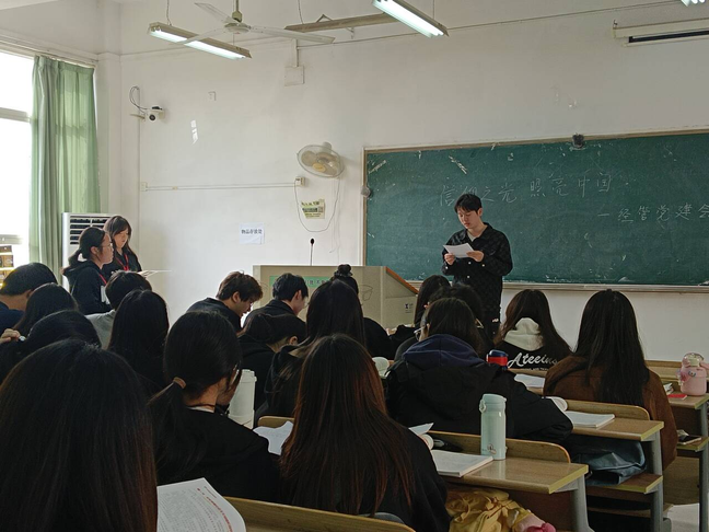 (经管党建讯 记者 徐恒湘)本着加强党的建设,提高入党积极分子的思想政治觉悟,树立正确的入党动机,激发入党热情,确保新发展党员质量的目的,武汉城市学院经济与管理学部党建会于2024年11月4日中午12:05一三支部在南5301教室,二四支部在5302开展了第58期积极分子动员大会。