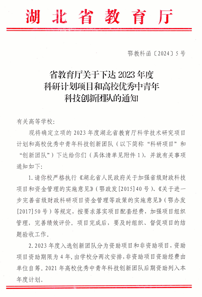 (通讯员 张佩妮)近期,湖北省教育厅发布《省教育厅关于下达2023年度科技计划项目和高校优秀中青年科技创新团队的通知》。我校经济与管理学部耿丽君老师主持申报的《数字技术赋能创新链产业链生态融合路径和政策优化研究》成功立项,项目编号:B2023432。