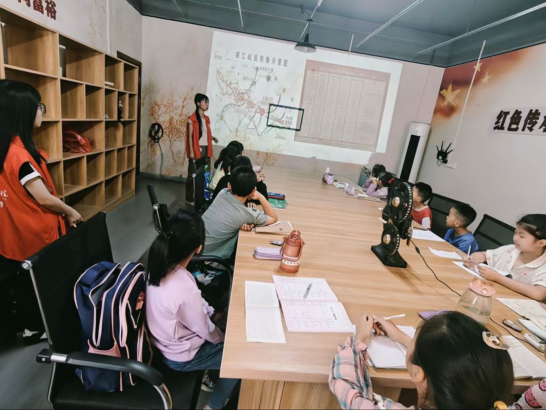 经管分团委、学生会新闻宣传部讯(记者:李语馨)5月24日上午,程河村党校服务中心举办了一场以“铭记湘江战役历史,传承红色精神”为主题的爱心课堂活动。志愿者疏韵婷、李嘉琪、江丹尼、廖艳艳、周禹辰为当地小学生精心准备了一堂红色教育课,引导孩子们铭记历史,传承红色精神。