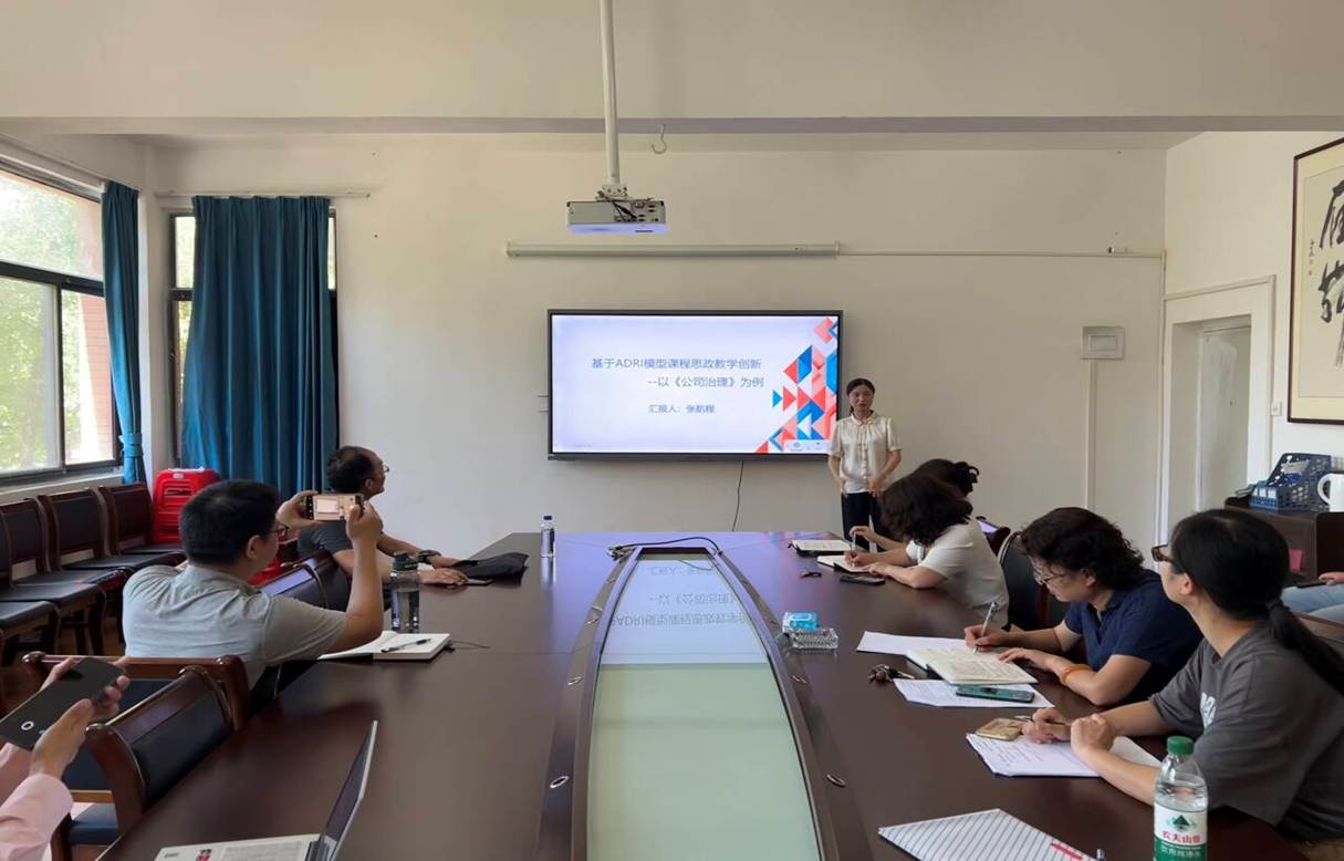 工商管理专业张航程老师带来“基于 ADRI 模型的公司治理课程思政教学创新” 的精彩分享。她详细介绍了ADRI模型,即通过制定包含思政元素的课程培养目标、施行深入挖掘并精准嵌入思政元素的教学过程、利用学习通平台开展问卷调查进行成果评价,以及依据反馈优化教学质量管理的改善实践方案,形成闭环不断迭代。在实践中,张老师以李锦记、美的等案例为例,实现课程目标中显性知识和隐性知识并行,并加强以学生、教师、学部三位一体的测评机制,推进课程思政育人成效。