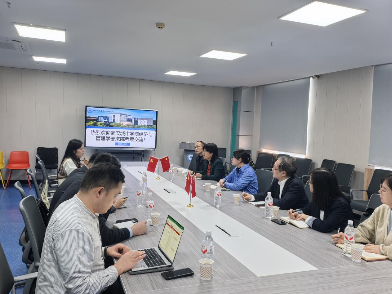 2025年10月31日上午,武汉城市学院经济与管理学部副主任邱玉莲率学部管理系、教务科及专业教师代表一行,赴湖北商贸学院进行交流访问。本次交流旨在深入了解湖北商贸学院在产教融合、产业学院建设及应用型人才培养方面的先进经验,共同探索新商科教育的发展方向。