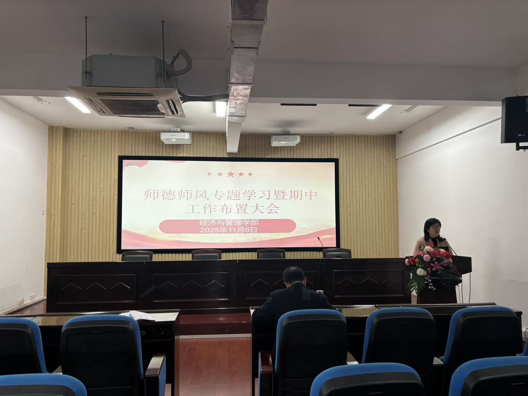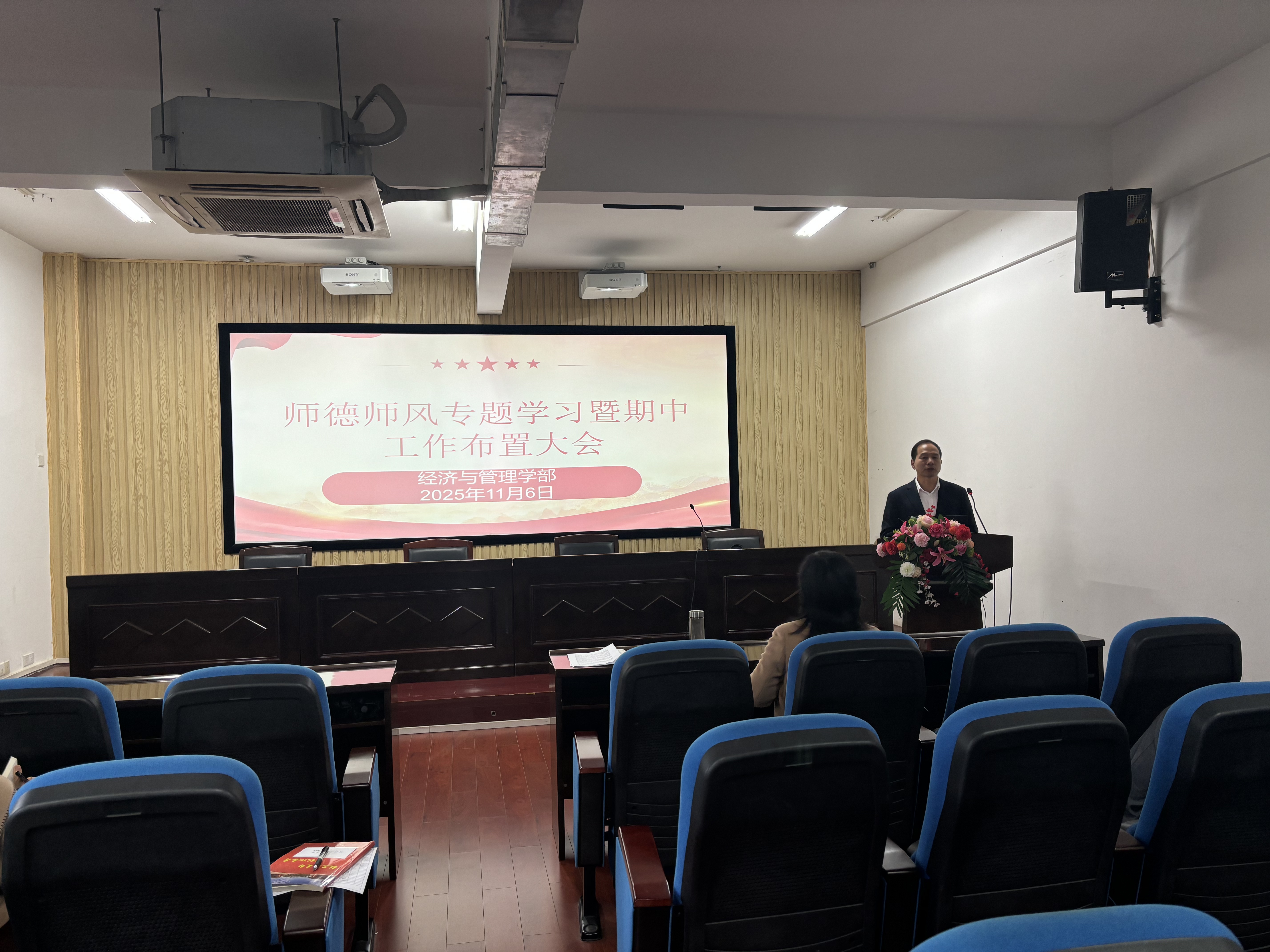 为深入贯彻落实学校教学质量监控及本科合格评估要求,进一步加强教师队伍师德师风建设,2025年11月6日下午两点,经济与管理学部在行政楼332会议室组织召开了迎评工作推进、期中教学检查工作部署暨师德师风警示教育会。会议由学部党总支副书记毛军杰主持,学部副主任邱玉莲出席并讲话,学部全体专职教师80人参会。