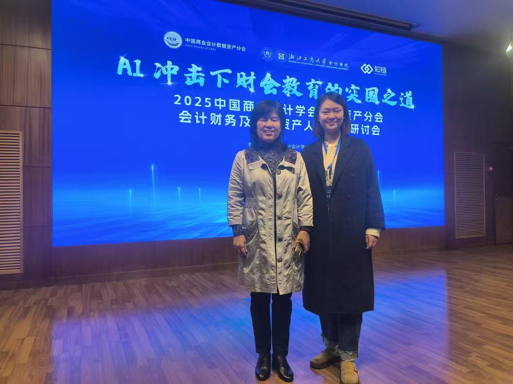 (通讯员:陈银)2025年11月14日-11月16日,中国商业会计学会数据资产分会在杭州举办主题为“AI冲击下财会教育的突围之道”的会计财务及数据资产人才培养研讨会。本次会议由浙江工商大学会计学院承办,北京知链科技有限公司协办,汇聚产、学、研、用领域权威专家及各高校会计、财务、审计、数字经济等学科带头人。武汉城市学院经管学部教学主任邱玉莲教授应邀参会,会计系副主任陈银陪同参会。