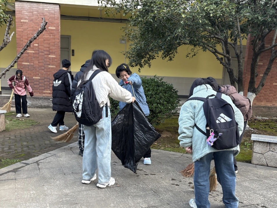 活动当天,同学们在学部辅导员的带领下,手持清洁工具,有序分组投入到南七教学楼外围绿地、道路、公共区域的清扫与整理工作中。大家分工协作,配合默契,认真清理散落在草坪、步道上的落叶、纸屑等杂物,擦拭公共设施,并对卫生死角进行了集中整治。初冬微寒,却丝毫不减同学们投入劳动的热情,忙碌的身影成为校园里一道温暖而亮丽的风景线。