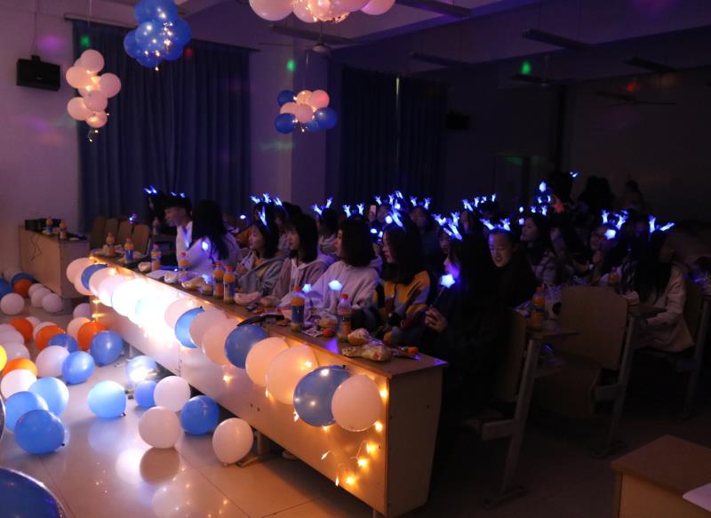 为了让同学们有更好的体验,各班精心装扮了团会教室,并黑板上用特色的字体写着“青春翱翔 逆风飞扬”团会主题。气球灯光彩带一应俱全,各种娱乐道具和零食也陈列其中。作为班级的一份子,同学们拿出自身的才艺,勤加练习,准备在团会中展现自我。