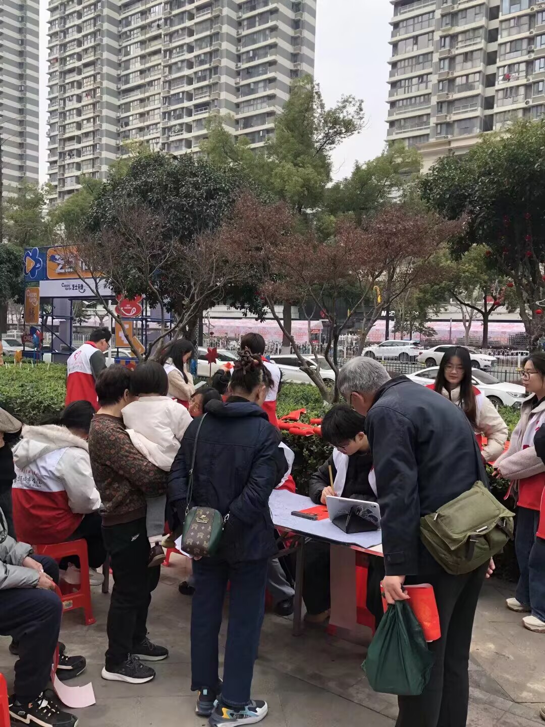 经济与管理学部青年志愿者服务队的同学们则全程协助活动开展,从布置场地到维持秩序,从递纸研墨到为居民讲解春联寓意,用热情细致的服务让现场氛围更加温馨。