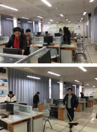 为进一步加强学院党建和思想政治工作,经济与管理学部实验室于2018年12月21日中午开展把院校党组织建设成坚强的战斗堡垒的活动,以营造清洁优雅、文明有序的实验室环境。该活动得到了经管学部党总支和大学生党建会指导老师高园的支持。黄翘云主任、熊薇老师与学部学生入党积极分子和ERP协会骨干携手对经管学部管辖的四个实验室打扫卫生清洁。实验实训中心易锵懿副主任和杨远副主任发现我们正在北1001物流实训室内勤勤恳恳呢地打扫卫生,两位副主任也主动加入到做卫生清洁工作中来。