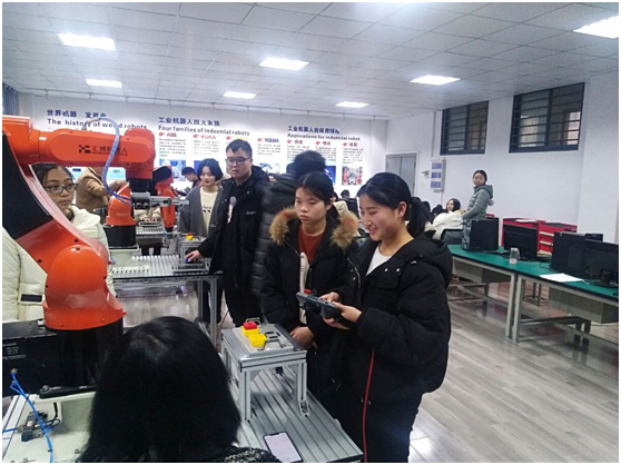 16级物流一班的柳聪同学表示:“这是我们班同学第一次近距离接触工业机器人和柔性生产线,能够在实训中了解并操作高度自动化设备,我感觉非常幸运,我辈任重而道远。”