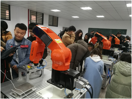本次实训课程内容包括手动操控工业机器人,利用编程语言实现工业机器人对工件的自动搬运、堆垛等物流作业,以及模拟运行智能柔性生产线等,最后以实操考核的形式结束。本次课程加深了同学们对智能制造、智慧物流的理解,在学生中取得很好的反响,同时也为今后物流专业学生的就业方向拓展了一条道路。