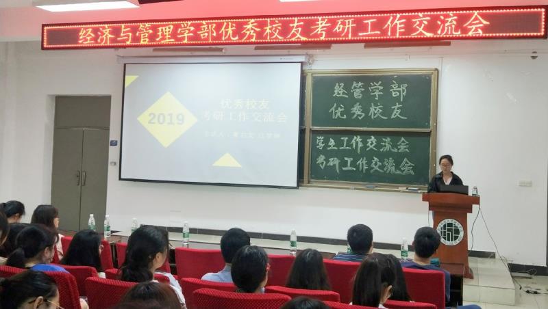 为了加强大三学生对研究生入学考试的认识,增强考研斗志、提升专业能力自信,从而明确学习方向、掌握考研技巧,以积极乐观的心态迎接考研这一巨大的挑战,2019年4月19日下午16:00,武汉科技大学城市学院经济与管理学部在南一报告厅举行了2019年经管学部优秀校友考研工作交流会。努力拼搏,放飞考研梦想;激情飞扬,彰显青春魅力。