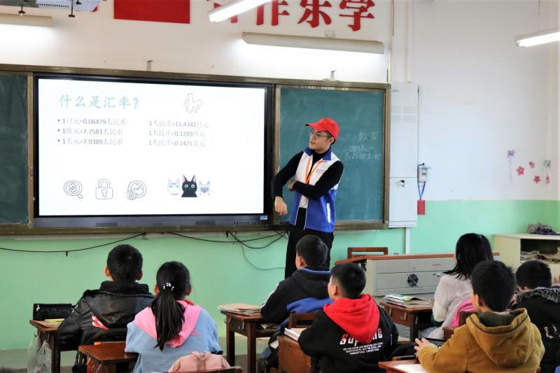 经管学部支教团的同学们在课间进入到了教室,分别在两个班级展开关于“理财”的教学,在教学过程当中,主讲人许明瑞同学热情大方的一段自我介绍首先吸引了同学们的注意,大家把目光都集中在了他身上。他尽职尽责的向台下的同学讲述将何为货币、何为理财和如何理财,并让大家猜各个时期的货币名称,讲台下的同学们都积极踊跃举手,一系列的互动让课堂气氛逐渐活跃起来。随后许明瑞还讲到了手帐,并鼓励大家从小就学着记账,管理好自己的零花钱,树立良好的理财观念。台下的同学目不转睛,频频点头,对所讲内容都表现出莫大的兴趣。本次支教活动以志愿者们给小朋友们分发奖品收尾,随后志愿者们在校门口合影留念后离开了学校。