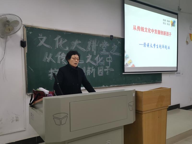 讲座开始前,徐德钰老师讲述了本次讲座的内容概要。她表示没有边界的国家不叫国家,没有边界的定义不叫定义。老师讲述了什么是传统文化,传统文化具有哪些形态等等。种类多种多样,内容丰富多彩。随后,徐德钰老师围绕“创新”一词进行了延伸。她表示创新是人类特有的认识能力和实践能力,是人类主观能动性的高级表现,是推动民族进步和社会发展的不竭动力。一个民族要想走在前列,就一刻也不能没有创新思维,一刻也不能停止各种创新。在“大众创业,万众创新”的“双创”热潮下,创新因子的发掘正在是传统文化散发新的墨香。创新、创业正成为许多人的追求和梦想。