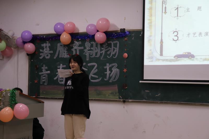 活动在19:00准时开始,各团支部在主持人的带领下统一开始了第一个节目——团知识有奖问答,众团员积极参与,热情活跃。问答结束后,各团支部展示了异彩纷呈的节目表演,有的团支部通过舞蹈的方式,扭动着活泼动感的舞姿,播放着轻松欢快的曲调让大家暂时脱离了问答时的严肃紧张;有的团支部的男生上台进行诗朗诵,激昂的声音朗诵着沧桑的辞句,将大家的思绪带到了那段峥嵘岁月;有的团支部开展了寝室默契大比拼的活动,各个寝室的成员依次上台,向大家展现与众不同又温馨默契的寝室文化。随着各团支部活动的不断展开,洋溢在教学楼的青春活跃的气氛也在不断升温,逐渐迎来高潮。