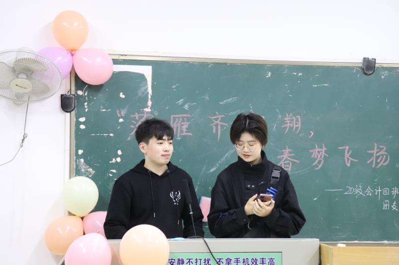 在活动的后半段,由新闻宣传办公室的记者对优秀班级进行进班采访。面对记者提出的“通过这次团日活动大家有什么收获”时,各团支部团支书给出了不同的答案,有的团支书认为这次团日活动是一次“破冰活动”,一别往日繁杂的功课,这样一次轻松的活动将班级中同学的关系拉近了几分;有的团支书认为这次团日活动对于同学们是一个舞台,将大家平常隐藏的才艺展现了出来。当团支书们被问到“在准备过程中遇见了什么困难时”,有的笑着说没有打气筒,装饰用的气球是由同学们一个个自己吹的;有的则是向我们展示了废物利用的装饰设计方案······采访的进行,将各团支部也不断给大家带来惊喜。在大家的努力下,本次团日活动取得了圆满的成功。