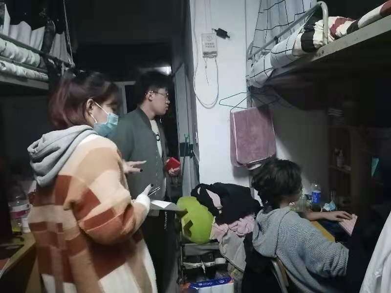 晚七点整,参加“大排查”的学生组织成员,党建会成员及老师在小红门集合。在小雪日,纵使风雨交加,却丝毫没有影响到所有人的工作热情,每名成员都撑着伞按各自部门有序站好。在经济与管理学部分团委旗下自律委员会的组织下,一百多名成员被分为了8个小组,每个小组的自律委员会负责人组织小组成员,简洁明了地讲解了查寝的评分标准及礼貌问题,随后对经管学部所在的各宿舍楼进行了卫生和安全检查。在获得了宿管阿姨的允许后,大家按照两两一组,男、女搭档的模式开展了查寝活动。在查寝活动中,他们注重礼貌和礼仪,首先在门外礼貌地询问,在得到允许后进入寝室内检查,对寝室内的环境整洁程度和是否使用了违规电器进行了认真、详细的检查并真实记录,公正严谨地为每个寝室打分。同时,他们还温馨地提醒了同学们不能使用违规电器,以保证用电安全,同学们也积极配合,整个过程进展得十分顺利。