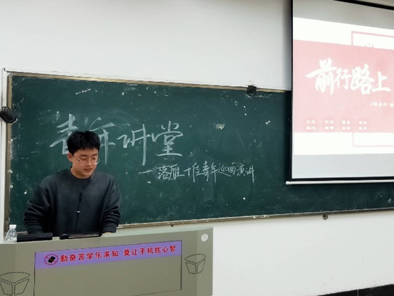 演讲伊始,由“落雁十佳青年”冯笛同学以切身经历向在座的各位分享自己的经验,向听众们讲述了他当青年志愿者的经历,他说:“青年志愿者服务既是一种奉献他人,又可以提升自己的方式。”通过当青年志愿者的经历,他学会了如何与人交流,如何处事。他认为青年志愿服务是一种充实自己人生的一种有效的方法,一种奉献爱心,奉献温暖,奉献光明的方式。接着冯笛同学向各位21级新生发出“你们认为的人生意义是什么?”的提问,希望借此了解他们对青年志愿服务的看法,同学们从不同角度进行了积极的回答。冯笛同学在听完几个同学的答案后,结合自身的经历对台下的新生强调了学习的重要性,同时鼓励同学们勇于尝试,凭借自己努力创造更多的可能,以“无私奉献,服务他人”为宗旨,积极参加志愿者活动向社会献出爱心。他呼吁同学们的眼光需长远,树立长期目标,并坚定的向自己的目标不断奋斗。冯笛同学精彩的演讲赢得了台下一阵又一阵热烈的掌声。最后经管学部青年志愿服务队的成员向21级新生发出邀请,希望大家积极参与青年志愿活动。