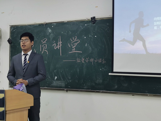 会议伊始,由张莹同学对本次讲堂的主讲人严雷同学做了简单的介绍。严雷同学曾担任我学部学生会主席,分团委副书记,多次获得校内外竞赛奖项,同时他也在2020-2021学年度被评为优秀共产党员。严雷同学首先向大家阐述了我党的历史,中国共产党是我国各族人民的领导核心,如今中国的繁荣昌盛,国泰民安都离不开党的指导。他还强调2021年是中国共产党的百年华诞,百年征程波澜壮阔,百年初心历久弥新,作为为青年的我们要始终紧跟共产党的领导,为中华名族的伟大复兴做出努力。接下来,严雷同学向大家讲述了自己的人生规划,他通过结合自己在学生组织的任职经历,告诉我们如何去做一个综合型人才:我们应勇于尝试,不怕失败,努力去实现我们的人生价值。严雷同学自述在大学学习生活中,获得16项国家级奖项,32项省级奖项,69项校级奖项,以此告诉我们正是因为有不怕试错,敢于试错的精神,他才能一次次的迈向自己不熟悉的领域,并且努力学习。最后,他向我们提出了几点建议。告诉我们在今后的日子里,爱国是首要,最为中国人的我们要时刻热爱我们的祖国,其次我们还要主动发挥我们的高光点,勤能补拙从而提升我们的技能,使自己变得更加优秀。