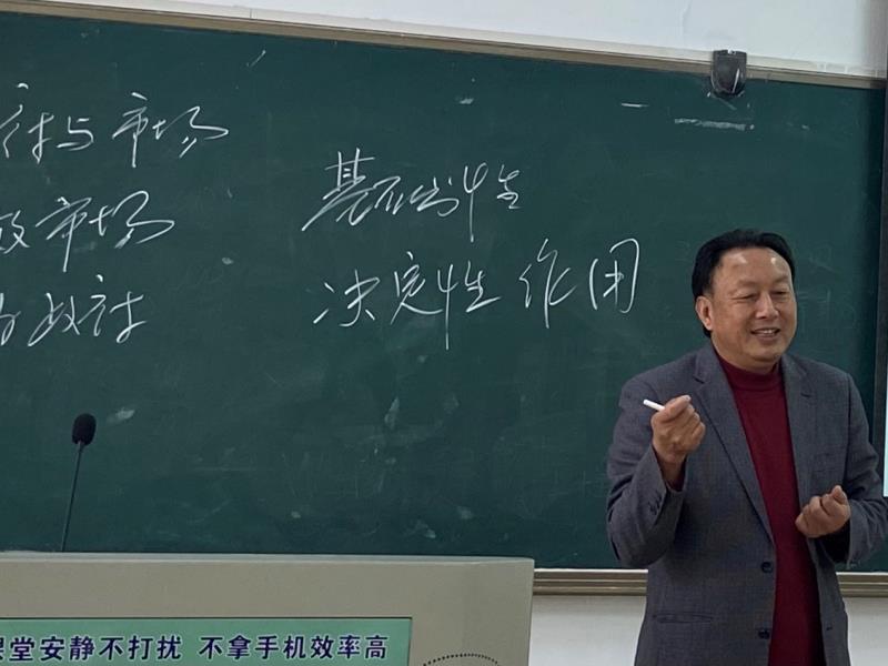 此次讲课内容分为两部分:一、学习习近平新时代中国特色社会主义经济思想,构建现代化经济体系;二、贯彻落实党的十九届六中全会精神。在第一部分的讲解中,学科带头人曾繁华向同学们介绍了习近平新时代中国特色社会主义经济思想的基本内容。大体概括为11个方面,包括发展思想、全面深化改革论、领导核心论等。在这其中,曾老师以美国为例,在出行工具、制造业等多方面与中国进行比较,深刻体现了在中国特色社会主义制度下集中力量办大事、中国共产党的领导的制度优势。同时,曾老师与同学们互动,课堂气氛活跃,加深了同学们对此的印象;第二部分学科带头人曾繁华为我们讲解了最近召开的六中全会精神,再次强调我国国家制度和国家治理体系具有多方面的显著优势。号召我们要坚定信念,对党保持绝对忠诚和对领袖保持绝对拥护。最后,学科带头人曾繁华关心同学们的日常生活和学习,以一席关心的言语结束本次讲课。