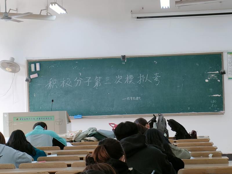 此次考试由经济与管理学部党建会党章学习督察部组织监考。中午12:10,参加考试的入党积极分子按要求按时进入考场并将个人物品放至指定位置。为确保考试的公平性,监考人员又反复检查数次。考试正式开始,监考干事分发试卷,通过前两次模拟考试,入党积极分子们已对考试内容十分熟悉,拿到试卷的入党积极分子们开始有条不紊地进行答题,应考同学们审题仔细,奋笔疾书。将近期党课教授内容和自主学习内容进行整合总结,填写在试卷上。半小时后入党积极分子开始陆续交卷,考场秩序井然,无作弊现象发生。